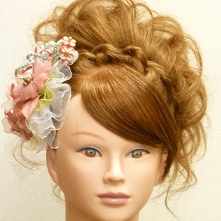 お客様からのリクエストで前髪の上の部分を編みこんでトップはボリュームをだしたスタイルをウイッグで作ってみました♪